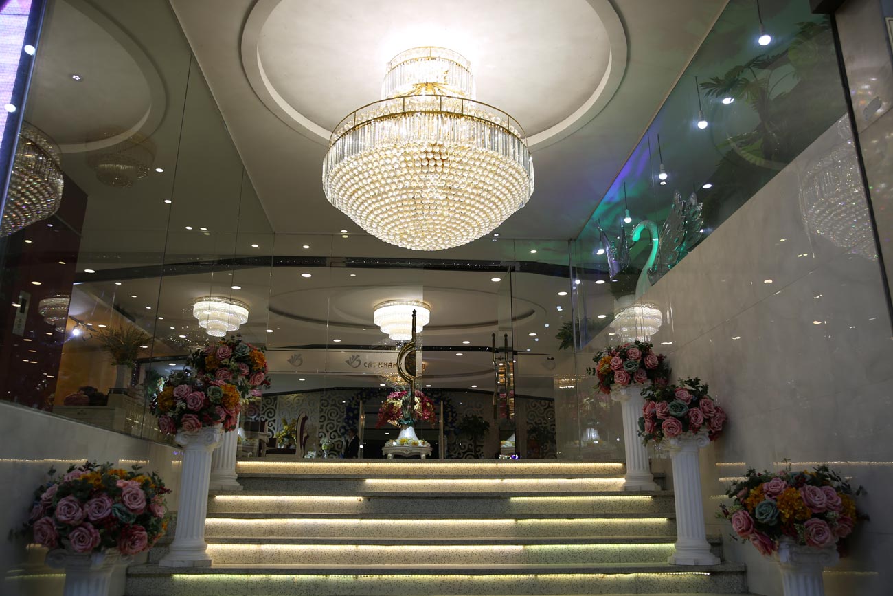 Mẫu đèn trang trí pha lê cao cấp được sử dụng trang trí trong nhà hàng tiệc cưới Nam Bộ. Khang Dy bán đèn và thi công lắp đặt đèn cho tất cả khu vực trong quận 12. Chúng tôi đã phục vụ rất nhiều các dự án tại đây từ nhà hàng, khách sạn, quán cafe, trà sữa, căn hộ chung cư, biệt thự…