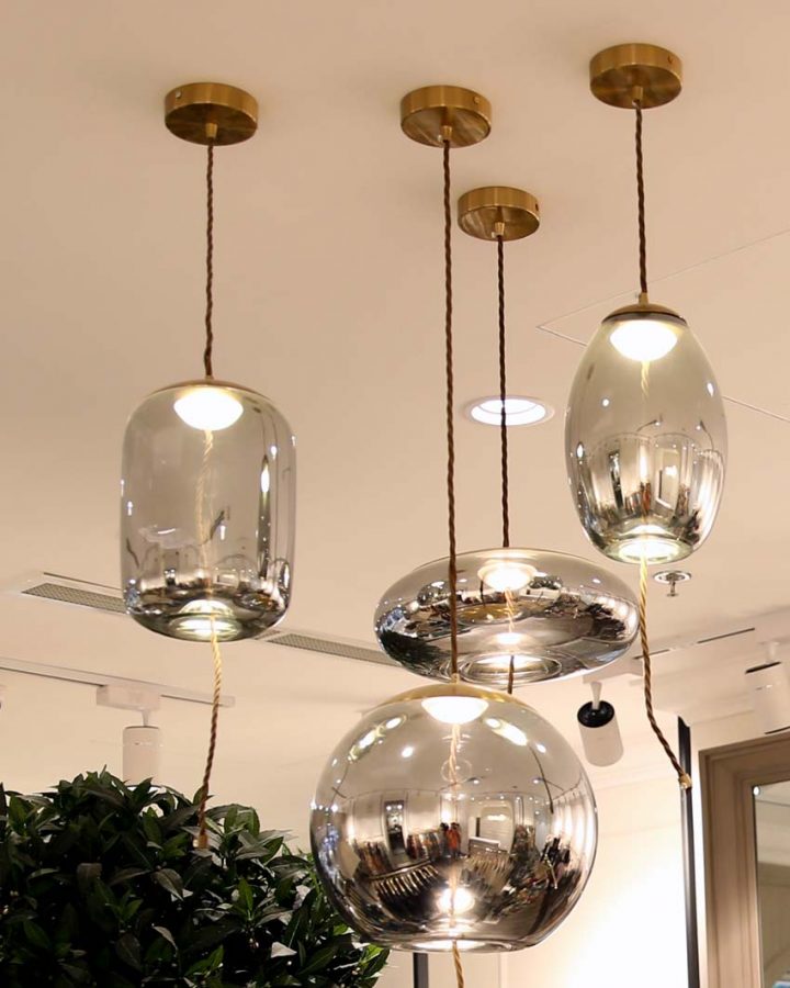 Mẫu đèn thả treo trần với bóng tròn thủy tinh rất phù hợp để treo thả các các shop thời trang. Mẫu đèn có thiết kế đơn giản nhưng có thể tạo điểm nhấn và tạo ấn tượng khi nhìn tổng thể.