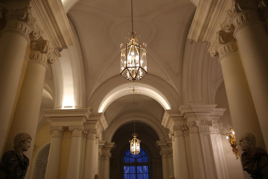 Đèn trang trí dùng trong lâu đài, cung điện Mùa Đông rất tinh tế. Cái tinh tế của nó thể hiện ở mọi chi tiết của cây đèn đều được tính toán tỉ mỉ. Thêm một chi tiết, bớt một chi tiết, đều đều được cân nhắc. Và hơn tất cả cảm giác khi nhìn vào cây đèn thể hiện được hoạt động đang diễn ra bên dưới. Đèn trang trí sử dụng nơi này nó được hòa vào không gian, hòa vào con người, hòa vào thiết kế chung của cả cung điện.