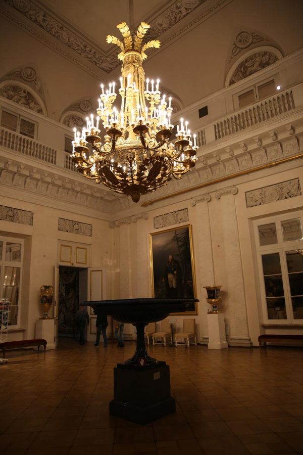 Thể hiện tinh thân chinh phục của các đời vua chúa Nga. Để có một đất nước rộng lớn như hiện nay các vua Nga, hết thế hệ này đến thế hệ khác, đã luôn luôn đi chinh phục các vùng đất mới, không ngần ngại chiến tranh với các nước khác để mở mang bờ cõi. Cây đèn chùm này cực kỳ đặc biệt đó là miêu tả bản đồ của nước Nga. Vòng xoáy chính giữa cây đèn chùm chính là Saint Petersburg cố đô của nước Nga. Một chùm tay vươn về phía đông phần ráp với Bắc Thái Bình Dương. Một chùm tay thể hiện phần ráp với Mông Cổ và Trung Quốc. Một chùm tay vươn ra thể hiện phần ráp với Châu Âu lục địa.