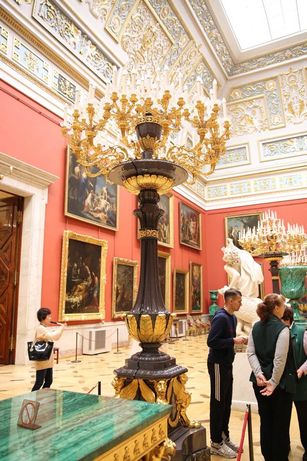 Ngoài những hiện vật như: 15.000 tác phẩm hội họa nổi tiếng, 12.000 bức tượng điêu khắc, 620.000 bản khắc, 1.000.000 bức phù điêu, 5.000.000 huy kỷ niệm và tiền đồng các thời kỳ thì cung điện Mùa Đông còn lưu giữ những bộ đèn chùm, đèn tường, đèn pha tranh, đèn góc bằng đồng, đèn ngoài trời bằng đồng tuyệt tác của lịch sử đèn trang trí. Không nói đến thời cách đây 200-300 năm họ đã tạo ra chúng bằng cách nào?nhưng đến bây giờ với hỗ trợ của máy móc hiện đại để làm được những bộ đèn tương tự thì điều đó thật không phải dễ dàng.