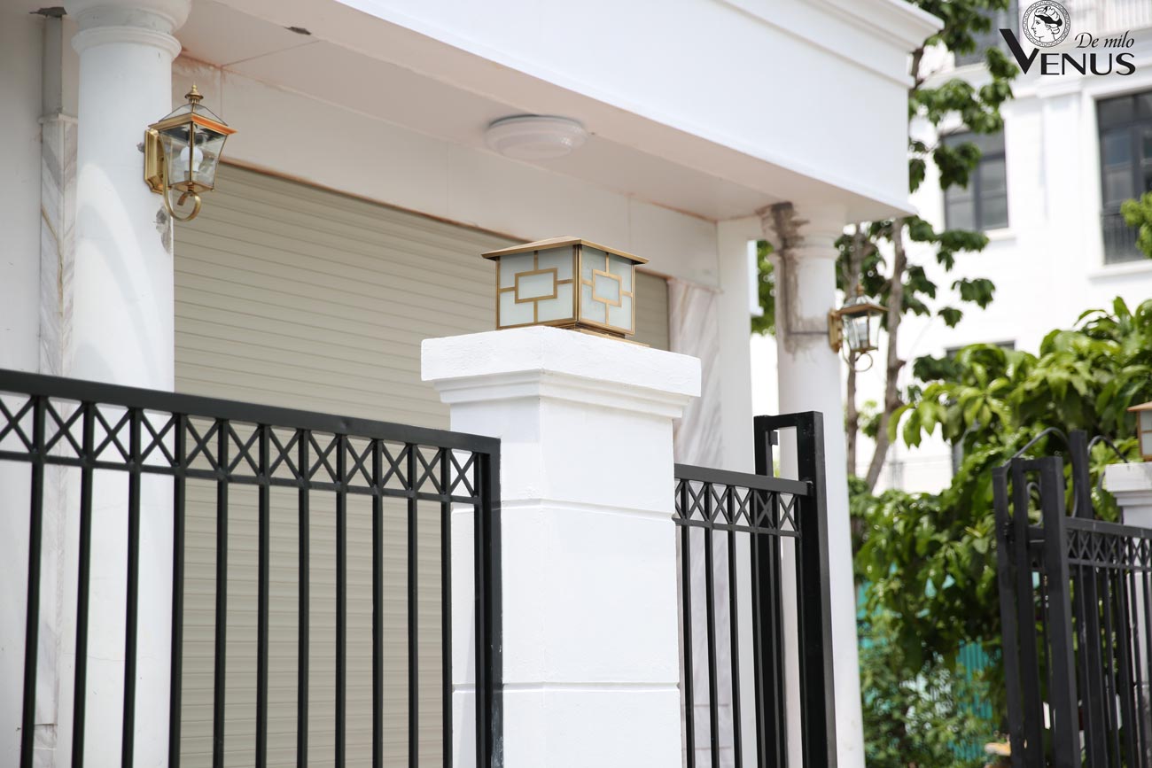 Đèn tường ra vào sử dụng chất liệu đồng cao cấp, chiếu sáng khu vực cổng ra vào và một phần khuôn viên sân vườn của căn hộ.