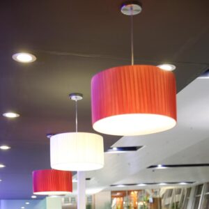 Đèn thả trang trí cho quán café bar luôn lạ lựa chọn hàng đầu cho những bàn yêu cầu không gian riêng tư. Ngoài đèn thả có thể lựa chọn thêm đèn chùm. Những kiểu đèn này luôn có xu hướng tạo một luống ánh sáng hình chữ V ngược, để thắp sáng không gian, bảo đảm không gian riêng tư luôn đủ ánh sáng để nhìn. Một số quán cafè bar sẽ dùng dây LED nhiều màu để tạo hiệu ứng lãng mạn cho quán, nhưng dây LED này có thể đổi màu từ từ, hoặc cố định một màu cho quán, loại đổi màu từ tư thường là màu RGB—R: màu đỏ, G: màu xanh, G: màu xanh da trời.