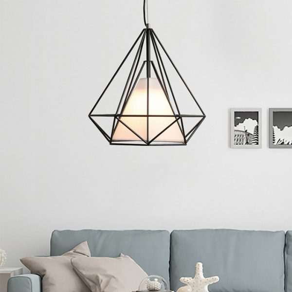 Có vẻ ngoài tựa như viên kim cương với các mặt khối tỷ lệ hoàn hảo. Chao đèn bằng vải cũng có các mặt cắt ăn ý với hình dáng bên ngoài. Sở hữu hình dáng mỹ miều kèm những đường hàn tỉ mĩ khiến “viên kim cương” toát ra ánh sáng thêm phần xinh đẹp và hoàn hảo hơn. Bạn có thể linh hoạt thay đổi phong cách trang trí theo các cách thả khác nhau như: thả đơn, thả 3 chiếc, thả theo tầng để mang lại không gian tuyệt vời của quán cà phê.