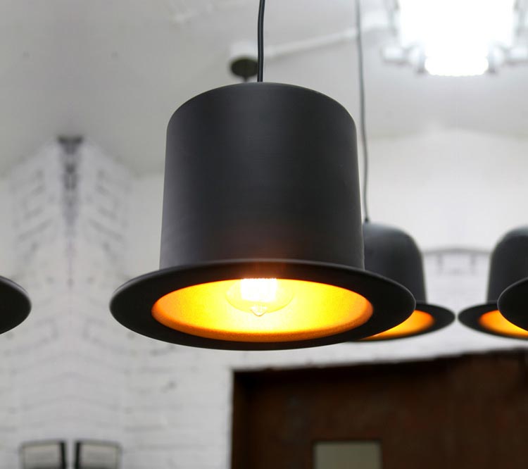 - Loại đèn thả hình chiếc mũ đế bằng: Tức là phần chóp của đèn là là đế bằng. Bên trong đèn thả có thể là phun một lớp bạc trắng. hoặc lớp sơn vàng tùy theo nhu cầu của từng công trình. Phần vành của chiếc mũ lại có hai loại, loại bằng và loại cong. Loại vành bằng thì dễ kết hợp với nội thất tính linh hoạt cao, còn loại vành cong thì thường phù hợp dùng để trang trí shop quần áo, hoặc làm thả chùm với nhiều loại đèn thả mũ đa hình dạng.