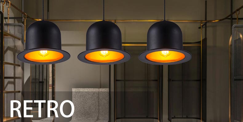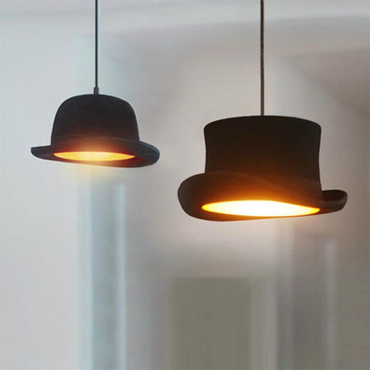 - Loại đèn thả hình chiếc mũ có đỉnh cong. Tức là phần đỉnh của chiếc mũ cong tròn lại. Trong loại này lại chia làm hai loại, loại có vành cong và vành thẳng.