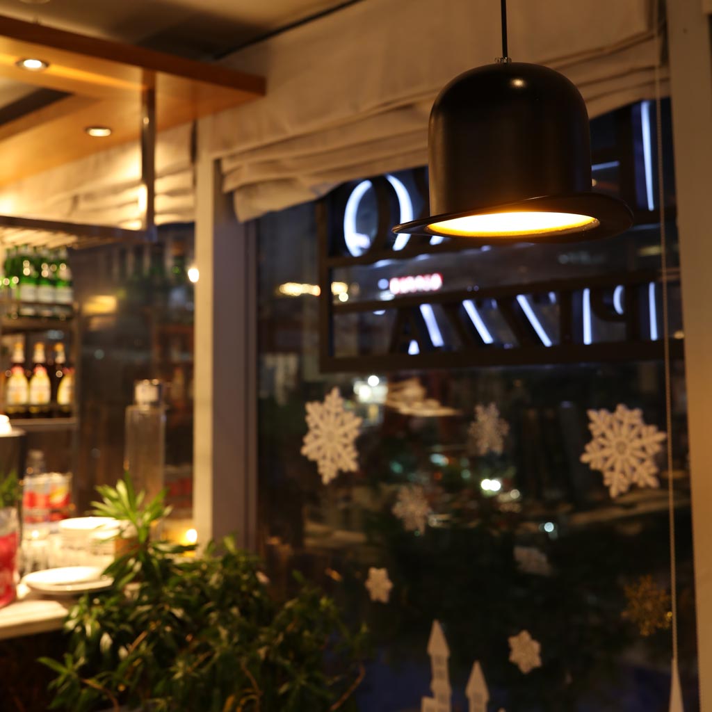 Thiết kế của nhà hàng càng độc đáo thêm nữa, là những chiếc đèn thả hình chiếc mũ. Gọi là chiếc mũ để phân biệt với chiếc nón mà người ta hay gọi nón đến nói nón lá. Đèn thả hình chiếc mũ này được thiết kế khá lâu đời, vào khoảng năm 2010, sau đó được phổ biến rộng ra thế giới, và người Trung Quốc giúp nó được sản xuất với giá thành rẻ hơn rất nhiều so với nguyên bản.