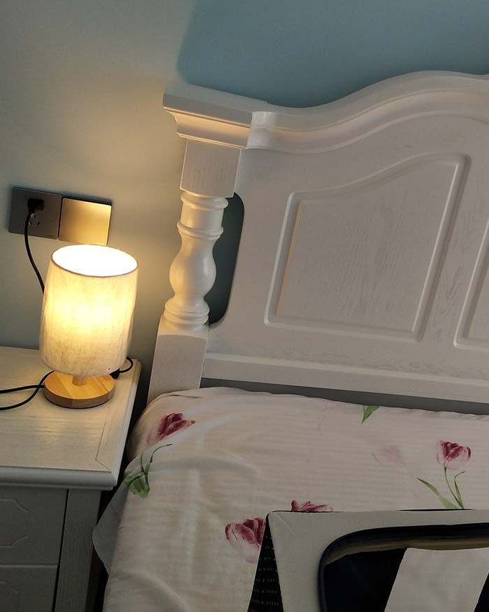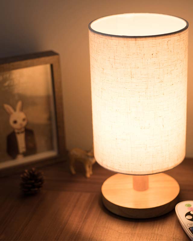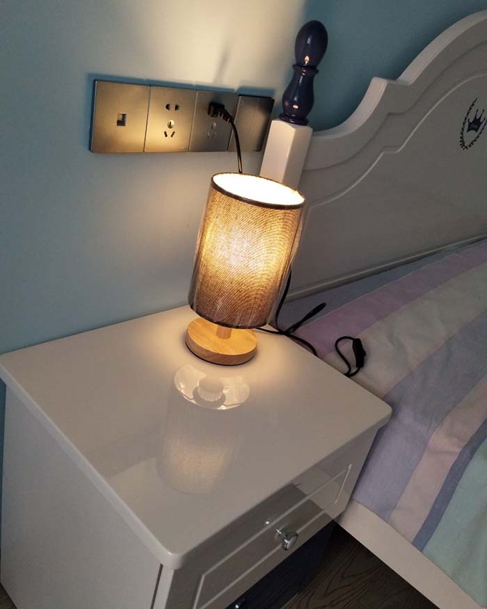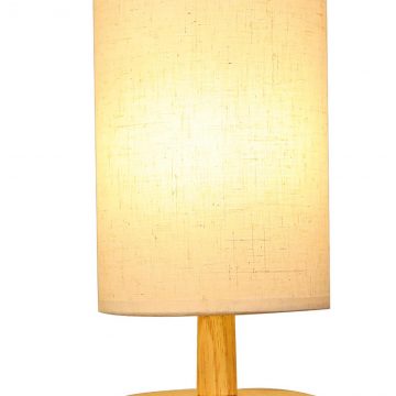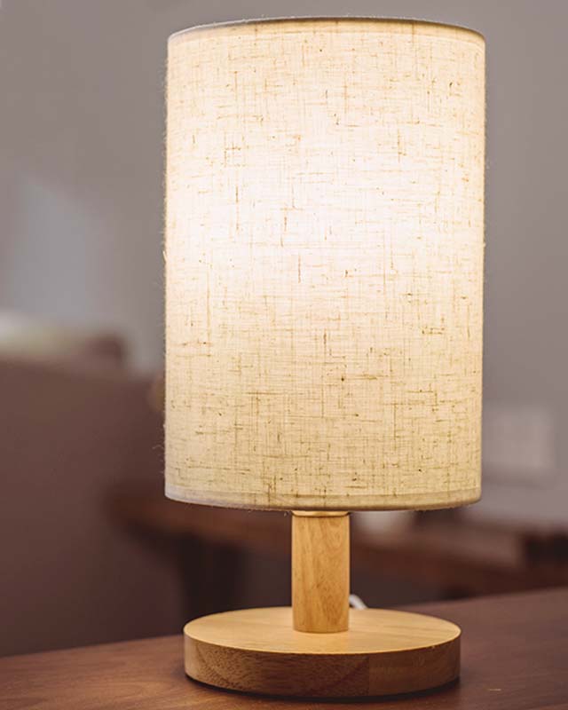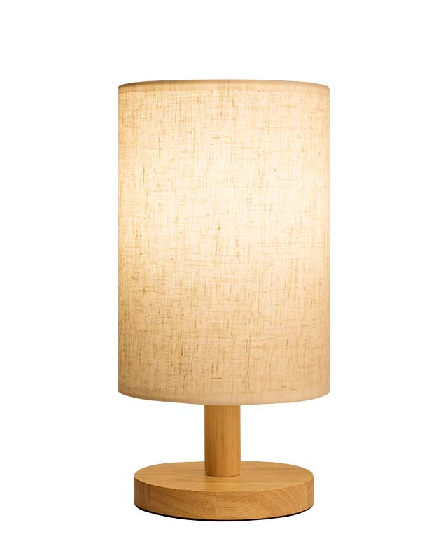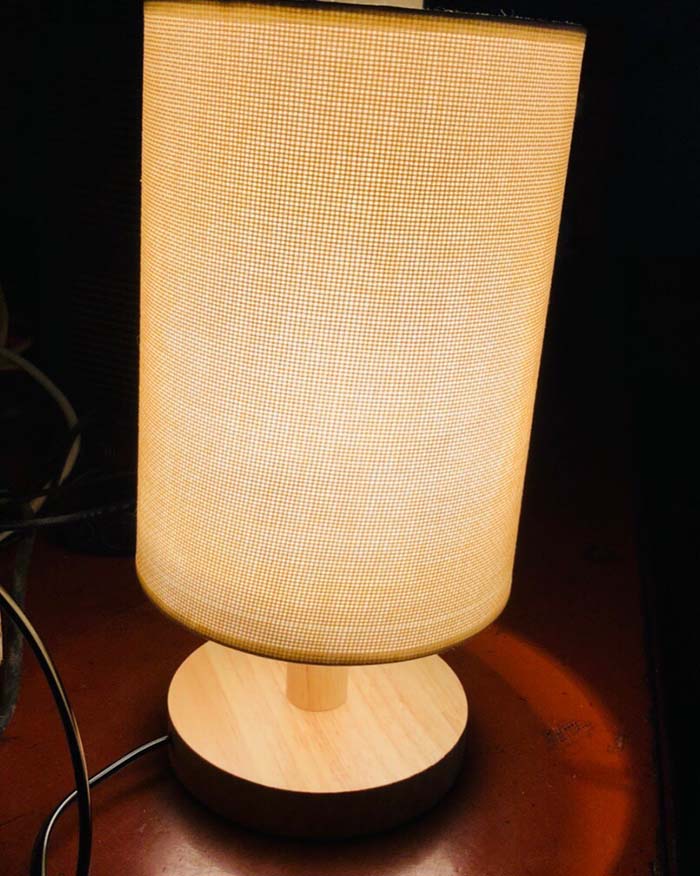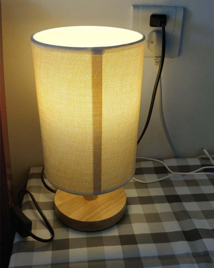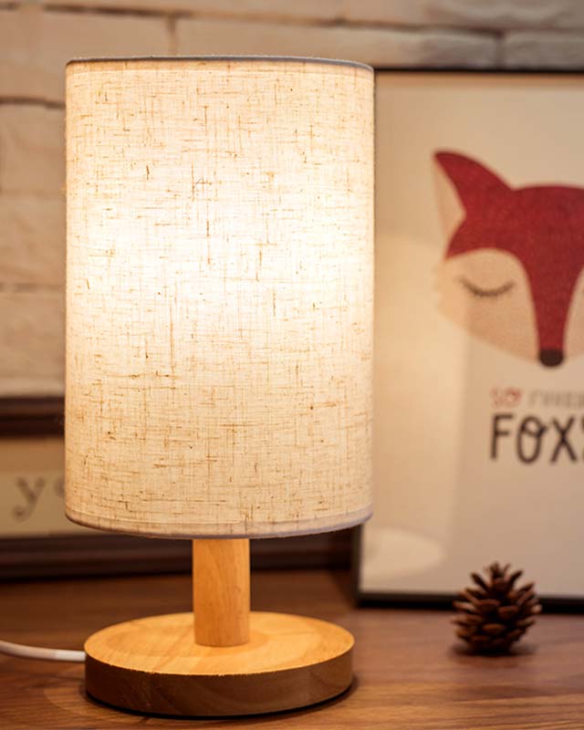 Mẫu đèn bàn có thiết kế ngộ nghĩnh với phần chụp vải hình trụ tròn chiếm gần hết phần chiều cao của đèn. Mẫu đèn có thiết kế đơn giản những không kém phần độc đáo này chắc hẵn sẽ đem đến cho bạn nhiều điều thú vị. Phần chân đèn được làm từ gỗ tự nhiên, chụp vải giúp làm mềm ánh sáng. Đây là gợi ý rất tuyệt vời để chiếu sáng phòng ngủ của các thành viên gia đình bạn.