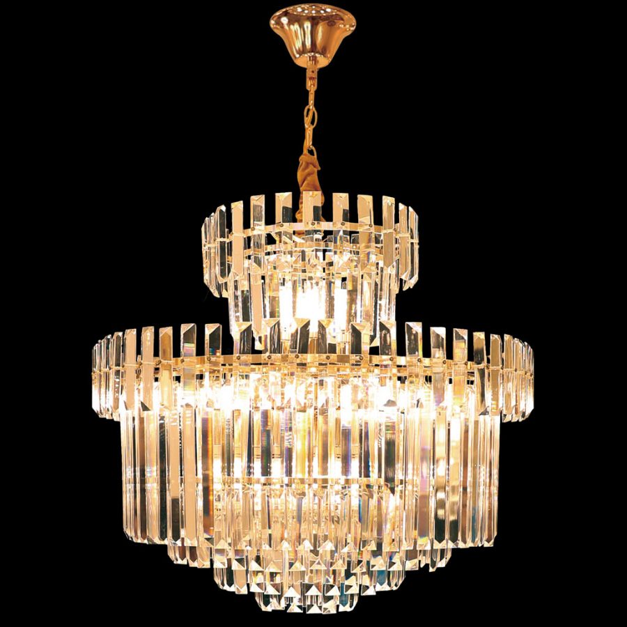 Đèn chùm VR86591 được thiết kế từ những thanh pha lê nhân tạo K9 (pha lê nhân tạo chất lượng tốt nhất) đước cắt vát hình kim cương sáng óng ánh, kết thành nhiều tầng. Sản phẩm đem đến cái nhìn đẹp mắt cho căn phòng của bạn.
