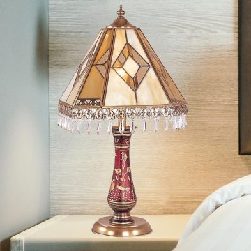 Đèn bàn Tiffany là tên gọi chung cho các mẫu đèn bàn dựa trên phong cách của mẫu đèn bàn do hãng Louis Comfort Tiffany thiết kế. Với giá bán mẫu đắc nhất lên đến triệu đô. Mẫu đèn này có đặc trưng là sử dụng các mảnh thủy tinh nhiều màu theo phong cách nghệ thuật cách tân Art Nouveau. Hiện nay, đèn bàn Taffany được các hãng gia công Trung Quốc sản xuất dự trên nguyên bản với nhiều biến thể khác nhau có giá bán dễ chịu hơn rất nhiều. Mặc dù được làm lại, đèn vẫn giữ được vẻ đẹp độc đáo của mình, cũng như vẫn được chế tạo những nguyên liệu cao cấp, tạo nên nét đẹp sang trọng so với các loại đèn bàn khác trên thị trường.Venus 600158-01A là một chiếc bàn đèn Tiffany được thiết kế theo hướng đơn giản nhưng vẫn giữ được sự sang trọng của mình. Đèn rất thích hợp để ứng dụng cho khu vực phòng khách hay bàn đầu giường ngủ. Khung chao đèn và chân đế được làm từ kim loại đồng, thân đèn từ gốm sứ cao cấp. Mang lại một nét đẹp tinh tế. Đặc biệt các hoa văn trên chao đèn sử dụng tông màu vàng đồng thanh lịch rất được yêu thích.Đèn bàn là vật dụng rất dễ trang trí, cũng như sử dụng ở nhiều vị trí khác nhau. Chỉ cần không gian thiếu sáng, đặt một chiếc đèn bàn xinh xắn là đủ giúp không gian sáng rõ hơn, vừa giúp không gian đó trở nên đẹp mắt, sang trọng hơn bao giờ hết.Với thiết kế kinh điển của mình, các mẫu đèn bàn Tiffany chắc chắn sẽ mang lạu nhiều cảm xúc khi được ứng dụng trong không gian của bạn. Một chút thanh lịch, một chút thu hút và đặc biệt là luôn mang tính nghệ thuật rất cao. Mỗi chiếc đèn bàn Tiffany cao cấp có thể khiến mọi người dành nhiều thời gian để ngắm nhìn vẻ đẹp của nó.Đèn ngủ để bàn Tiffany sử dụng bóng LED E27 tiết kiệm điện. Loại bóng này bán rất dễ tìm thấy để thay thế trên thị trường. Còn chất liệu đồng và thủy tinh của đèn là rất bền, cho giá trị sử dụng lâu dài. Mua sắm một chiếc đèn bàn chất lượng của Venus, bạn có thể sử dụng nhiều năm mà không lo hư hỏng, chỉ cần vệ sinh là sáng bóng như mới. Hãy sở hữu nay chiếc đèn bàn nghệ thuật này cho phòng ngủ của mình bạn nhé!