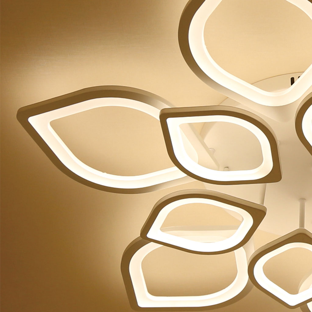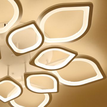 Mẫu đèn ốp trần hoa sen 12 cánh của chúng tôi được thiết kế rất tinh tế, bao gồm 6 cánh lớn bên ngoài và 6 cánh nhỏ bên trong. Đèn được thiết kế với các cánh hoa đối xứng đẹp mắt. Đèn ốp trần có đường kính lớn lên đến 90cm, do đó bạn hoàn toàn có thể sử dụng chiếu sáng và trang trí cho các căn phòng lớn. Với các căn phòng nhỏ hơn, bạn có thể chọn phiên bản khác với số cánh sen là 6 hoặc chính. Còn nếu vẫn dùng phiên bản 12 cánh thì bạn có thể chỉnh độ sáng đèn cho phù hợp. Mẫu đèn của chúng tôi có nhiều chế độ chiếu sáng khác nhau để bạn lựa chọn.