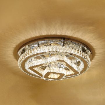 Đèn mâm ốp trần sử dụng những viên pha lê được cắt vát hình kim cương trong suốt. Tạo nên hiếu ứng lấp lánh sang trọng cho phòng khách của bạn. Đèn còn đem đến công suất chiếu sáng lên đến 80W, cung cấp ánh sáng cho không gian trong phạm vi tối đa đến 25m2.