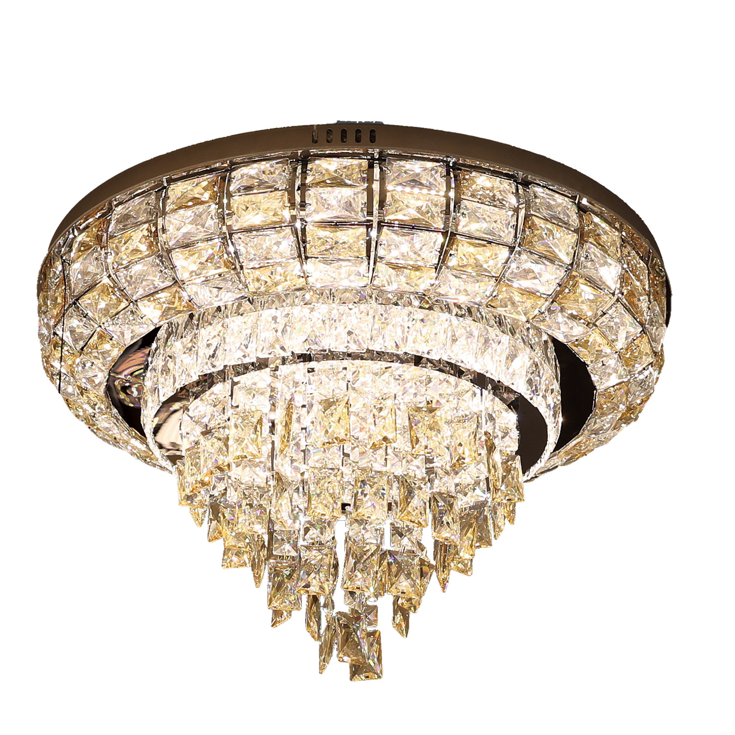 Đèn mâm ốp trần với rất nhiều viên pha lê lấp lánh đem đến vẻ rực rỡ cho phòng khách của bạn. Đèn có 3 mức độ tùy chỉnh ánh sáng khác nhau từ ánh sáng ấm, ánh sáng lạnh cho đến ánh sáng tự nhiên. Ánh sáng ấm áp đem đến sự dễ chịu nhất và màu vàng ấm cúng. Còn ánh sáng lạnh và tự nhiên đem đến không gian sáng rõ cho các hoạt động hàng ngày. Tùy theo mục đích sử dụng, vị trí lắp đặt đèn bạn có thể tùy chỉnh chế độ phù hợp nhất.