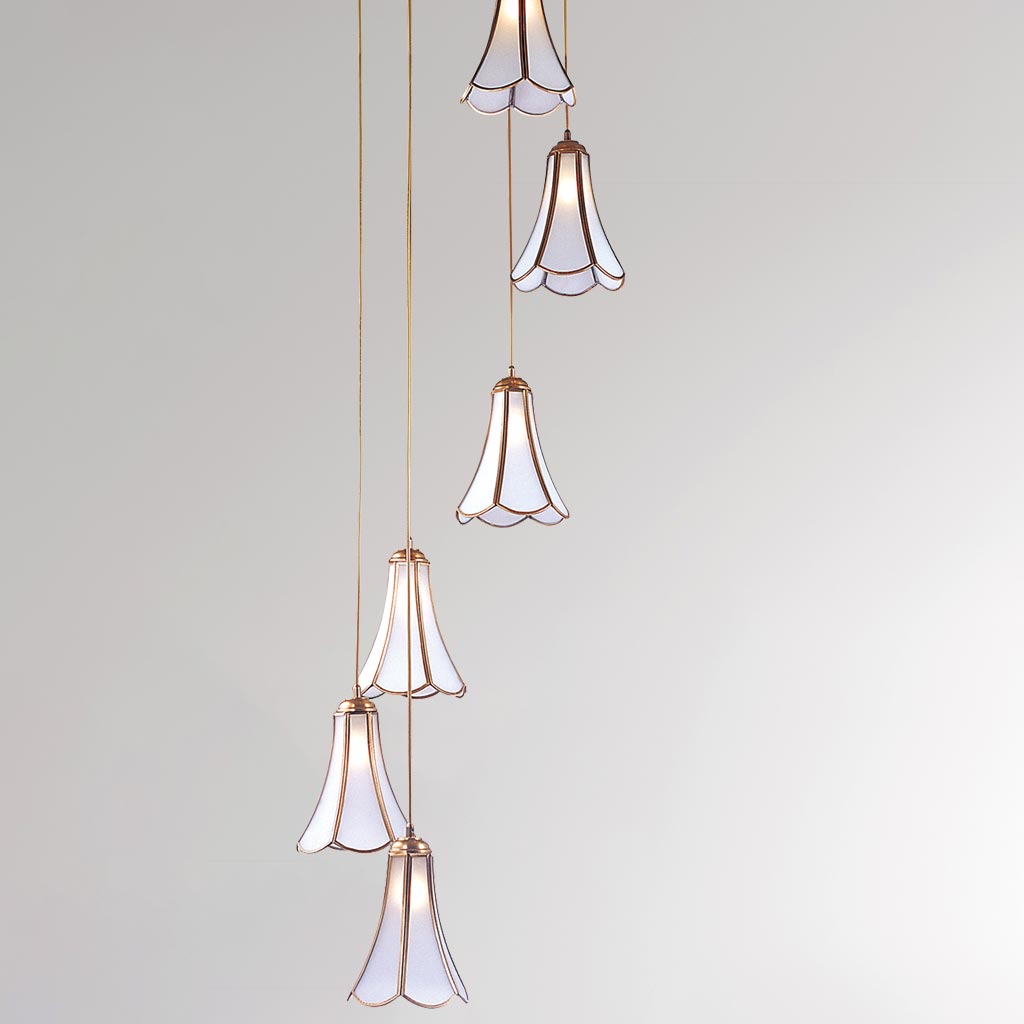 Đèn thả trần phòng khách bằng đồng thông tầng 6 bông hoa Venus 100034-06A 6 Bóng