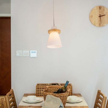 Đèn thả trang trí chiếu sáng bàn ăn chao thủy tinh hình nón chuôi gỗ cao cấp có khả năng duy tri vẻ ngoài bền lâu. Chỉ cần vệ sinh, lau chùi đơn giản là sáng bóng như mới.