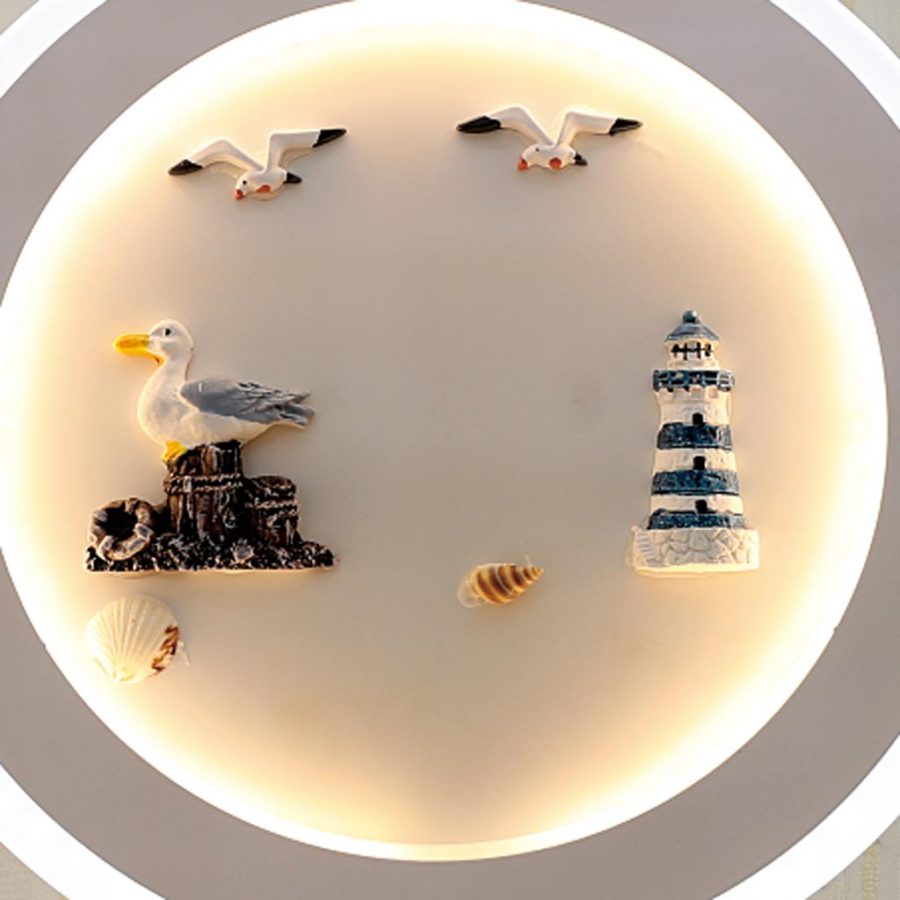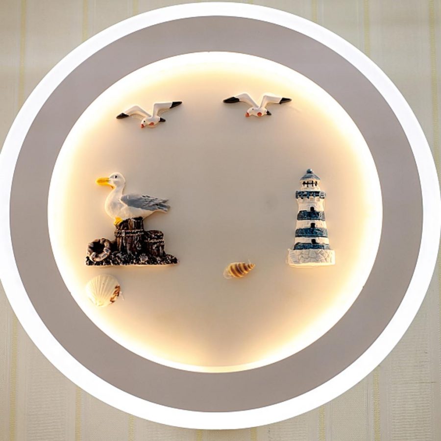 Đèn tường LED sử dụng họa tiết ngọn hải đăng và những con chim vô cùng sinh động. Đèn được sử dụng để trang trí trên tường, vừa cung cấp ánh sáng trong lành cho khu vực khoảng 10m2. Mẫu đèn LED của Khang Dy sử dụng công nghệ tiết kiệm điện và không bị nóng nếu sử dụng liên tục. Đặc biệt các họa tiết con chìm và ngọn hải đăng trên đèn đều là hình 3D, tái hiện không gian biển cả vô cùng sinh động.