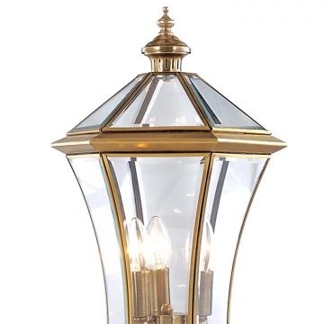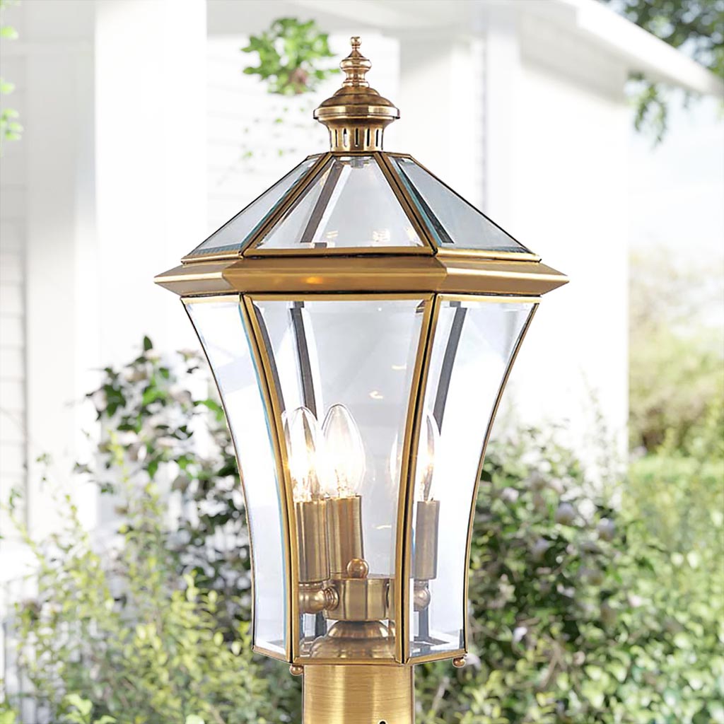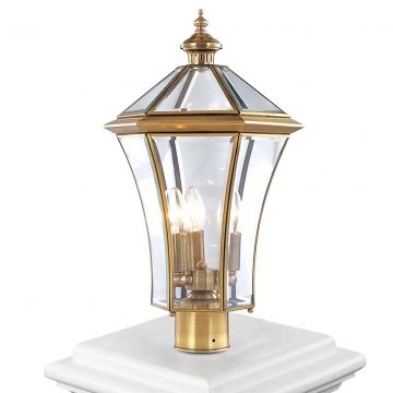 Đèn trụ cổng cao cấp với thiết kế hình khối lập phương bắt mắt. Sản phẩm sử dụng chất liệu đồng nên đem lại vẻ thẩm mỹ hoàn hảo, cũng như không bị oxi hóa khi sử dụng ngoài trời. Đèn sử dụng chao đèn thủy tinh trong khá dày, giúp làm mềm ánh sáng. Nhờ vậy ánh sáng từ đèn rất mềm và ấm cúng, đem lại không gian tiện nghi, vừa an ninh và cũng rất ấm cúng cho ngôi nhà của bạn.