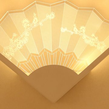 Đèn tường LED trang trí hình cây quạt in hình hoa đào đẹp mắt là một thiết kế mới của Venus. Sản phẩm mang đến cái hình vô cùng ấn tượng cho căn phòng của bạn. Đèn sử dụng các bóng đèn LED nhỏ tiết kiệm điện, hỗ trợ tạo nguồn sáng bổ sung trong phạm vi khoảng 2m. Bạn có thể sử dụng đèn để chiếu sáng khu vực cầu thang, lối đi, các vách tường phòng khách, phòng ngủ…