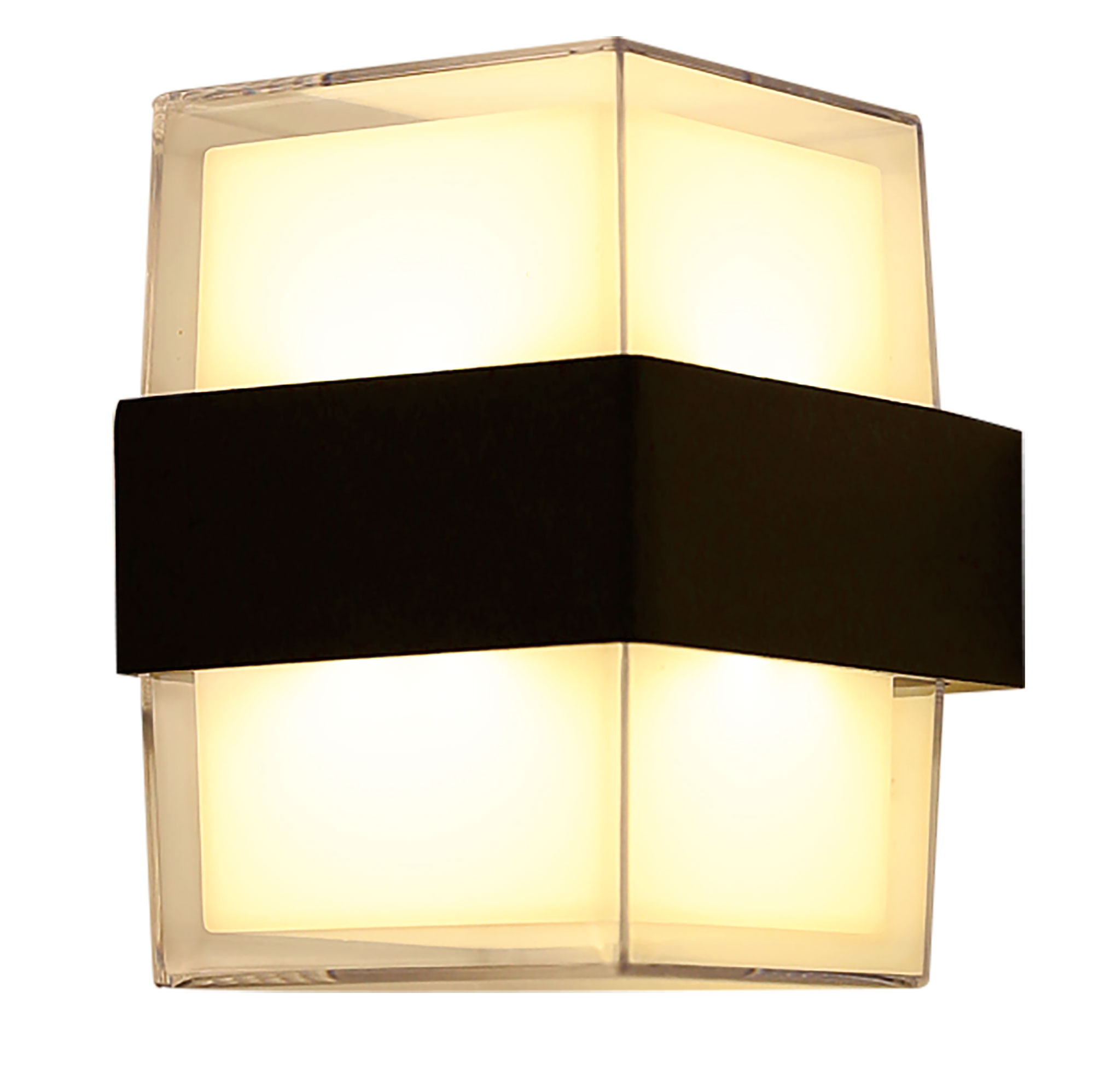 Mẫu đèn tường ngoài trời có thiết kế hình vuông với chất liệu thủy tinh 2 lớp. Lớp thủy tinh ngoài cùng trong suốt, lớp bên trong là thủy tinh mờ đổ nguyên khối. 2 lớp thủy tinh hình vuông giúp đèn tạo được hiệu ứng ánh sáng đẹp mắt. Đèn tường ngoài trời đẹp mắt này còn hỗ trợ chiếu sáng khuôn viên của bạn.