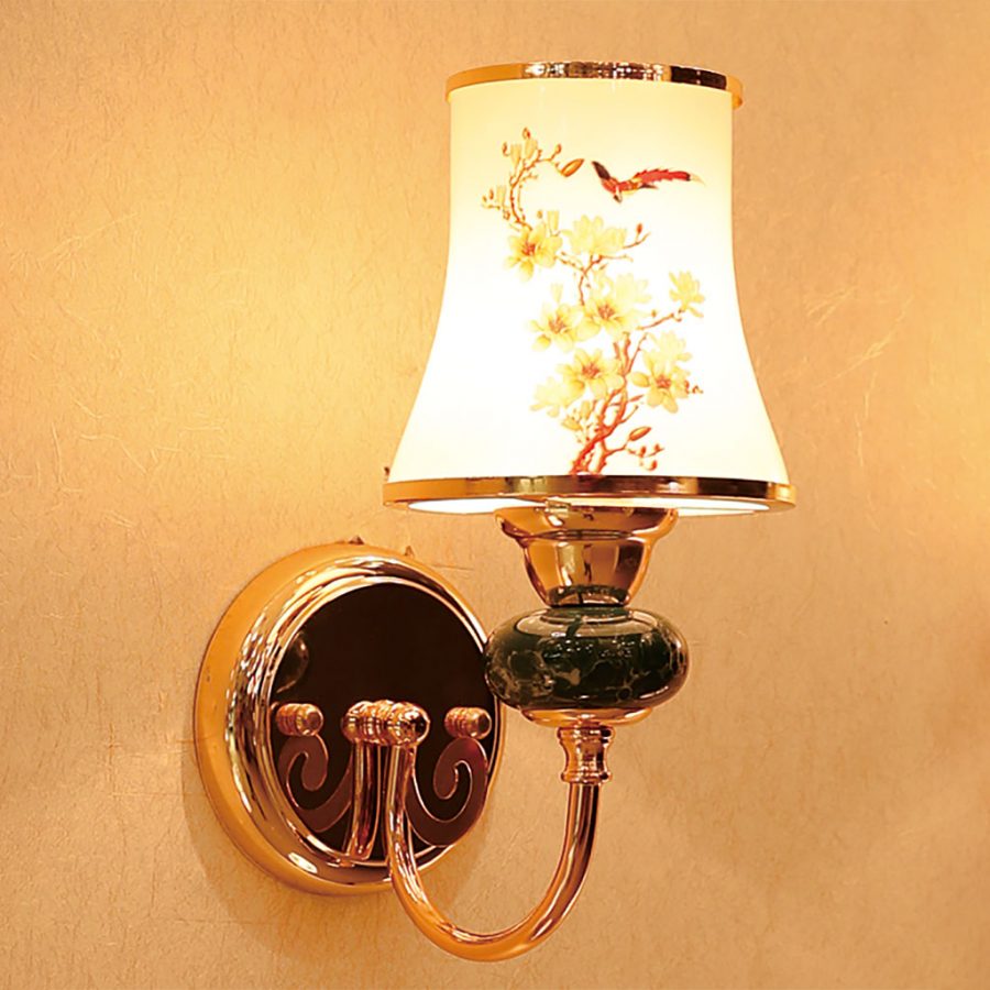 Đèn vách tường kim loại gắn ngọc chao vải hoa mai Venus VR7991