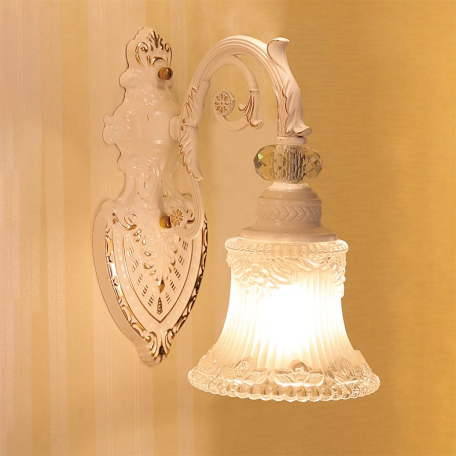Mẫu đèn tường cổ điển có thân chất liệu gốm, còn chao đèn sử dụng chất liệu thủy tinh cao cấp, đem đến vẻ đẹp lung linh, sang trọng cho không gian của bạn. Chao đèn thủy tinh trong suốt giúp ánh sáng được dịu đi, đem đến cảm giác thư giản cho bạn trong các hoạt động hàng ngày. Đèn sử dụng ở phòng khách, phòng ngủ, bàn làm việc…