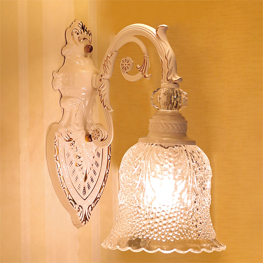 Mẫu đèn tường cổ điển có thân chất liệu gốm, còn chao đèn sử dụng chất liệu thủy tinh cao cấp, đem đến vẻ đẹp lung linh, sang trọng cho không gian của bạn. Chao đèn thủy tinh trong suốt giúp ánh sáng được dịu đi, đem đến cảm giác thư giản cho bạn trong các hoạt động hàng ngày. Đèn sử dụng ở phòng khách, phòng ngủ, bàn làm việc…