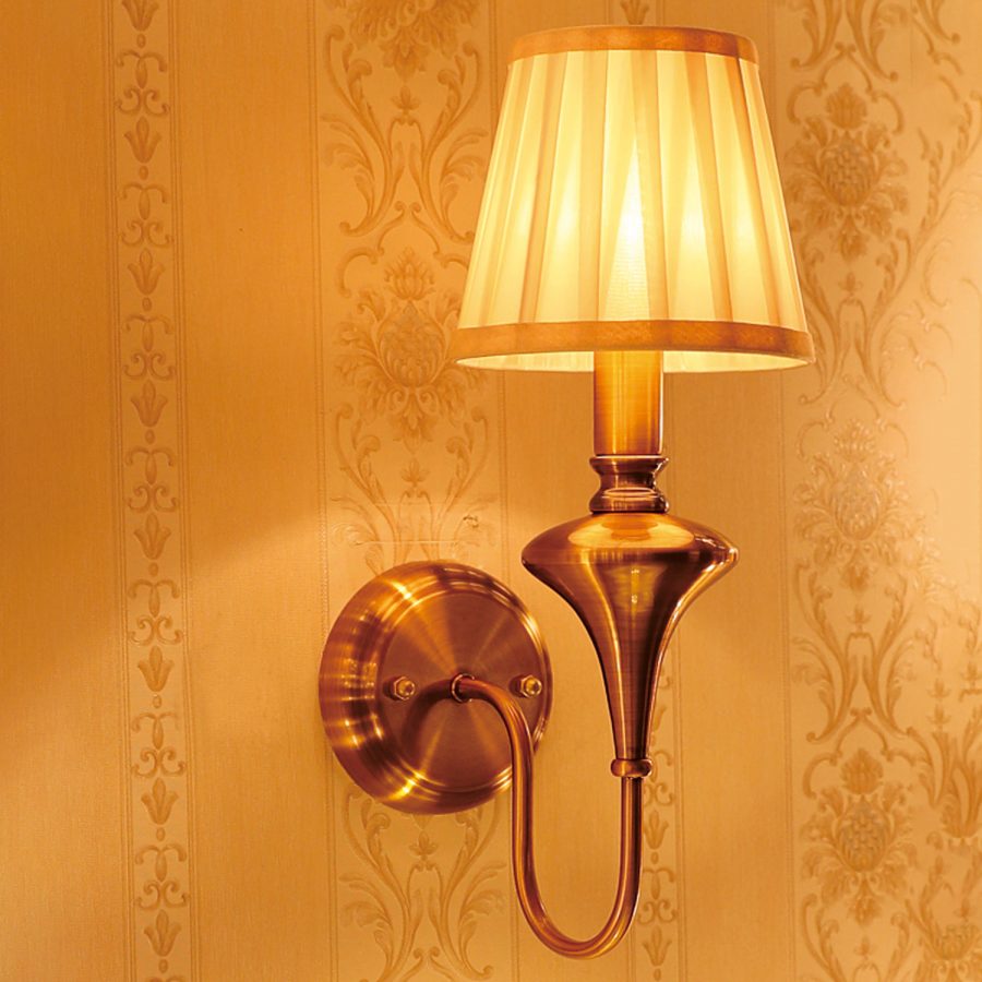 Đèn vách tường thân giả đồng chụp vải xếp Venus VR8108 có vẻ đẹp vô cùng tuyệt vời để thắp sáng và trang trí cho ngôi nhà thân yêu của bạn. Ánh sáng từ đèn trang trí như một vật trang sức không thể thiếu cho bất kỳ không gian hoàn hảo nào.