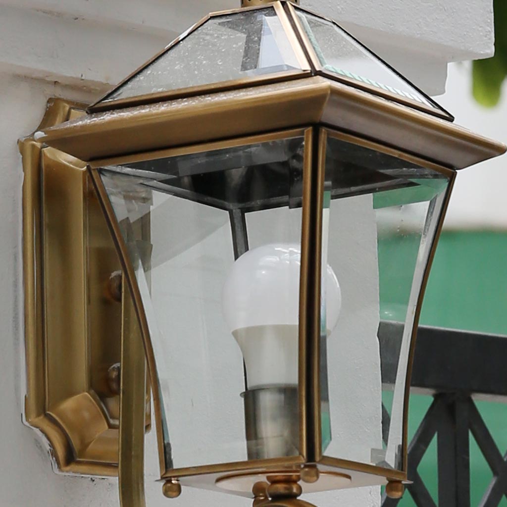 Mẫu đèn tường ngoài trời có thiết kế cổ điển đơn giản, với vật liệu chính từ hộp kim. Sản phẩm được sơn màu vàng bóng bền màu, có khả năng chống nước và thích hợp để trang trí ngoài trời. Mẫu đèn tường cổ điển được nhiều căn hộ, biệt thự sử dụng để chiếu sáng cổng ra vào, mái hiên hay 2 bên cổng chính. Chất liệu hoàn thiện cao cấp và ánh sáng ấm cúng cho gia đình bạn.