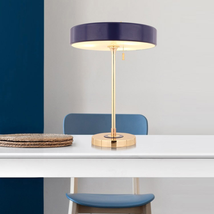 - Chụp đèn được làm bằng Meca cao cấp, có màu xanh dương, hình tròn mang lại vẻ đẹp hoàn mỹ cho đèn.