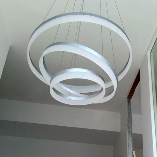 Đèn thả led 3 vòng tròn là sản phẩm bán chạy bởi sở hữu vẻ bề ngoài đầy ấn tượng. Sự kết hợp bộ ba vòng tròn có kích thước đường kính khác nhau nhưng vô cùng ăn ý. Đường nét 3 vòng tròn giao thoa tạo ra sự rộng mở trong không gian nhưng vẫn có những điểm chung nhất định. Thiết kế hiện đại, mới mẻ và có thể tùy biến các cách thả khác nhau tạo sự thu hút để chiêm ngưỡng và ngắm nhìn. Xu hướng kết hợp các đường tròn hình học làm tôn lên vẻ đẹp của căn phòng nói riêng và tổng thể ngôi nhà nói chung. Đặc biệt, ở phòng khách được xem là “bộ mặt” của ngôi nhà thì không nên bỏ qua đèn thả led 3 vòng tròn. Không chỉ nổi bật căn phòng mà hơn thế là bộc lộ gu thẩm mỹ và đẳng cấp của gia chủ.