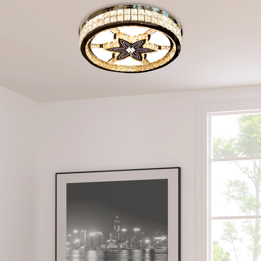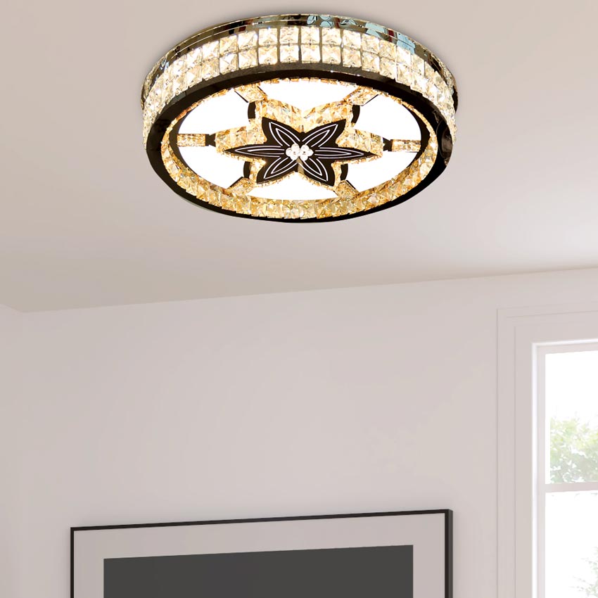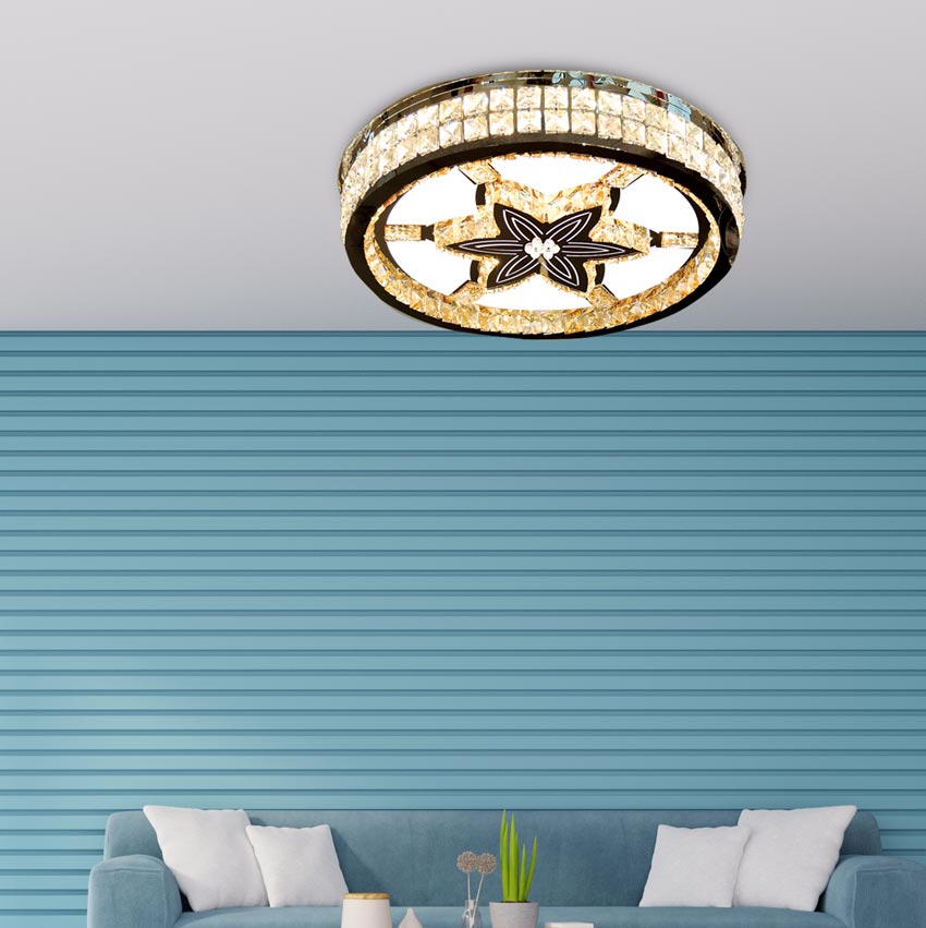 Mẫu đèn ốp trần pha lê có đường kính 600mm và kiểu dáng sang trọng của Khang Dy Venus. Đèn ốp trần sử dụng bóng LED chiếu sáng các viên pha lê, tỏa sáng lấp lánh trên trần nhà bạn. Đèn ốp trần pha phê có thể sử dụng để trang trí cho phòng khách, phòng ngủ, hành lang… vừa đem lại vẻ đẹp ấn tượng cho không gian vừa không đòi hỏi chiều cao trần như các loại đèn chùm phòng khách.