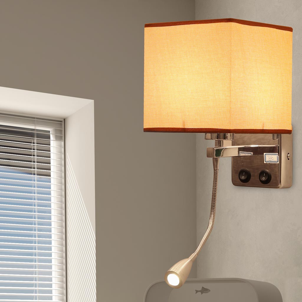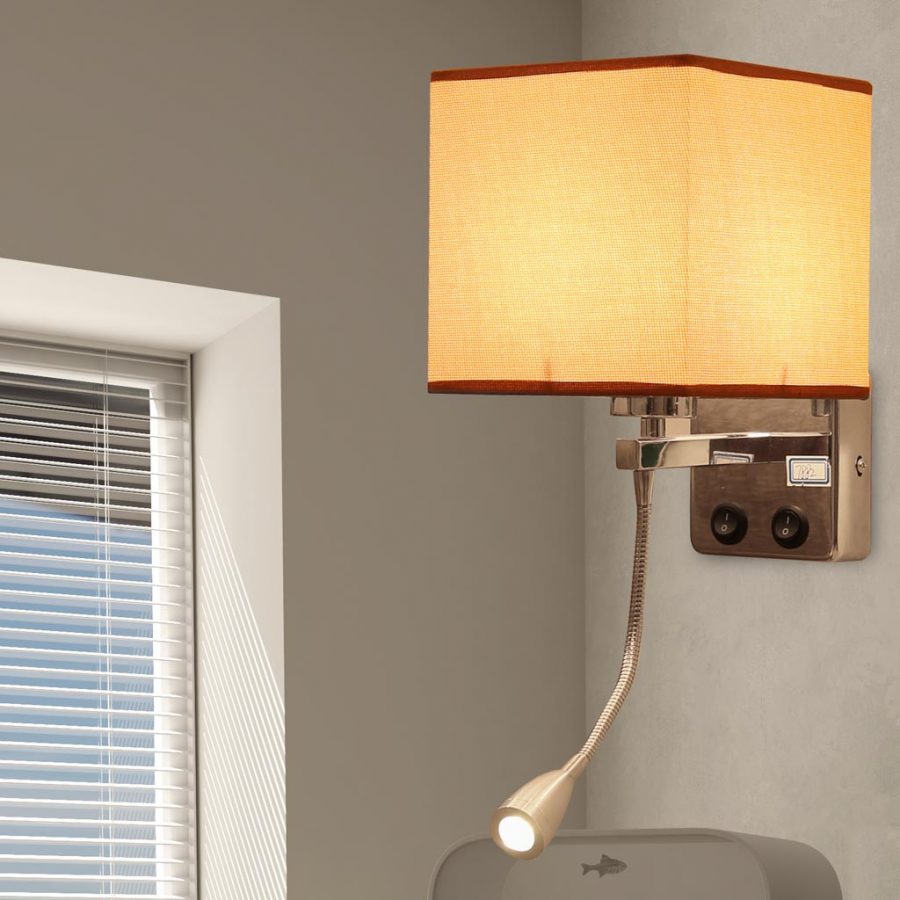 Đèn tường đầu giường Venus HT7882/1 đem đến cho một không gian ấm cúng với ánh đèn ấm áp. Đèn được hoàn thiện từ chất liệu hợp kim nhôm, thân đèn sáng bóng theo phong cách Ý. Đèn tường tích hợp đèn rọi nó có thể xoay góc 360 độ, dễ dàng chiếu sáng các vị trí bạn muốn. Thuận tiện cho việc đọc sách, hoặc một số các hoạt động khác. Venus HT7882/1 cũng có nút bật tắt riêng tiện dụng cho cả đèn chính và đèn phụ.