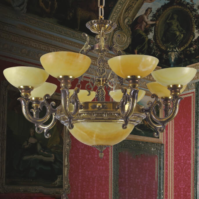 Đèn chùm đồng Chao đá 8 Bóng Venus MD1120/8 có vẻ đẹp vô cùng tuyệt vời để thắp sáng và trang trí cho ngôi nhà thân yêu của bạn. Ánh sáng từ đèn trang trí như một vật trang sức không thể thiếu cho bất kỳ không gian hoàn hảo nào.