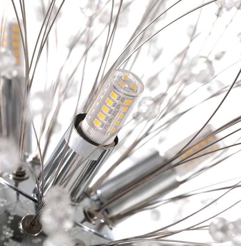 Đèn thả trang trí cầu dạng khối cầu chất liệu pha lê Venus S8A001/600mm bao gồm vô số các bóng đèn LED li ti, đem đến vẻ đẹp rực rỡ như một bông hoa bồ công anh. Với thiết kế đẹp lộng lẫy của mình, chắc chắn mẫu đèn thả này sẽ là điểm nhấn độc đáo và làm nổi bật không gian của bạn.