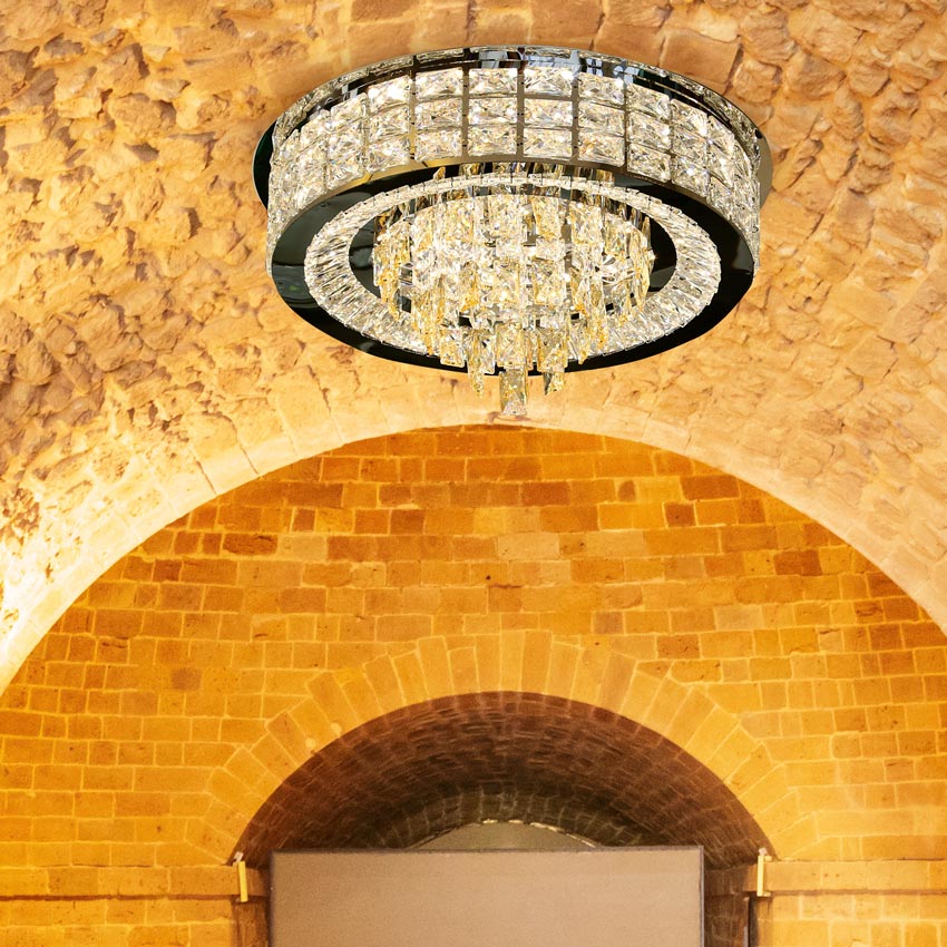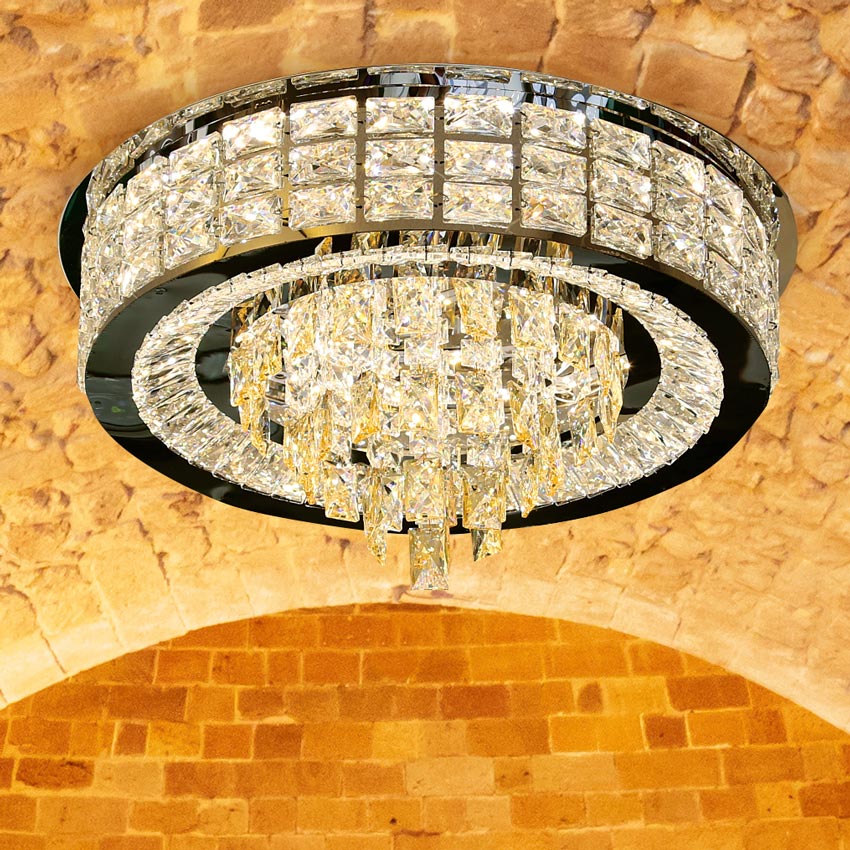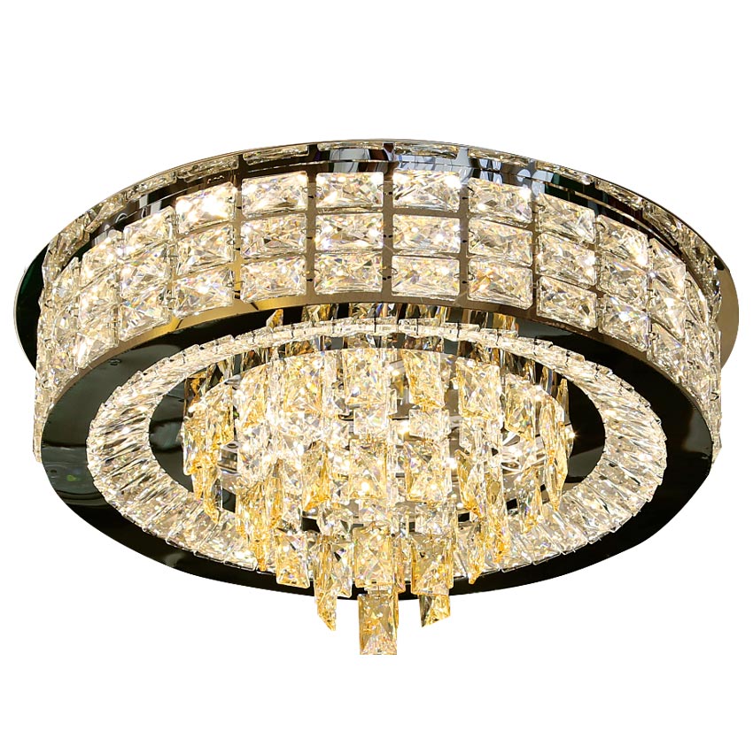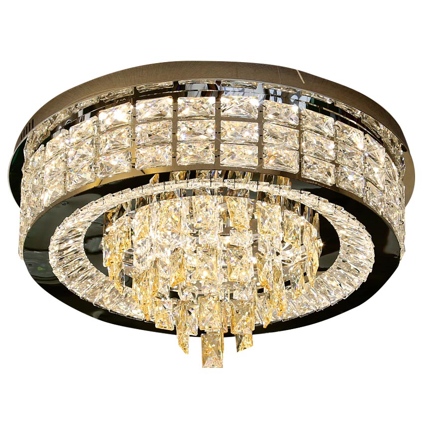 Mẫu đèn ốp trần pha lê mâm tròn 600mm mang đến vẻ đẹp ấn tượng. Đem đến vẻ sang trong như đèn chùm nhưng tạo cảm giác thoáng đãng hơn cho các không gian nhỏ. Đèn có thể ứng dụng ở nhiều vị trí khác nhau từ phòng khách, phòng ngủ, lối đi…