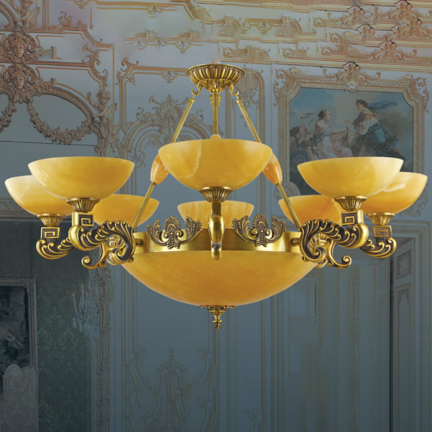 Đèn chùm đồng Chao đá 8 Bóng Venus YD001/8 có vẻ đẹp vô cùng tuyệt vời để thắp sáng và trang trí cho ngôi nhà thân yêu của bạn. Ánh sáng từ đèn trang trí như một vật trang sức không thể thiếu cho bất kỳ không gian hoàn hảo nào.